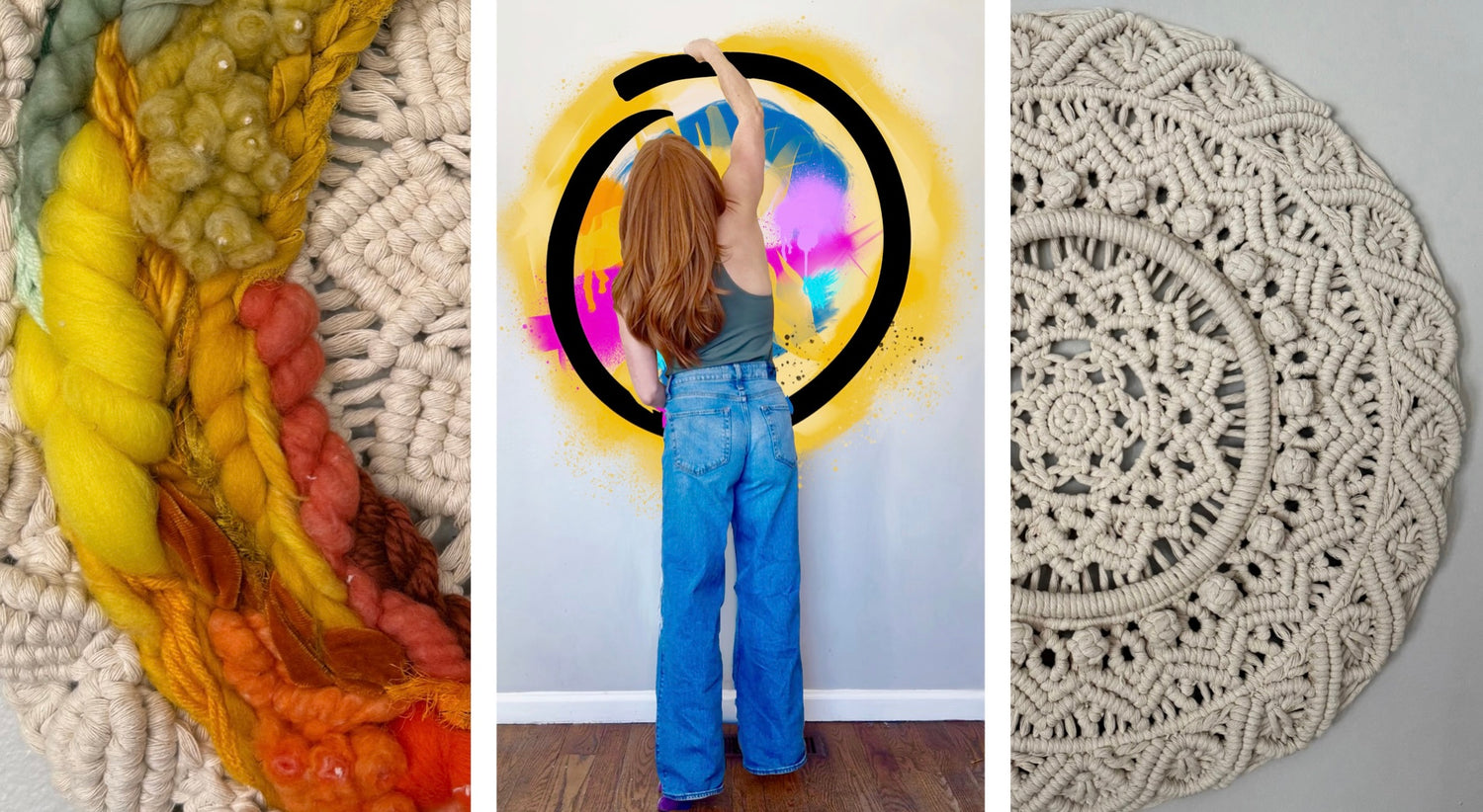 therapy, I have utilized different artistic techniques to help bring art and the creative processes into the lives of others. Using a myriad of materials, I create high-quality eco-friendly fiber designs. I strive to bring happiness into every space. My passion for art drives me, and my love for what I do enables me to consciously create and make this world a more beautiful place one project at a time.